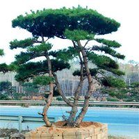 造型景觀松形態特征:常綠喬木。樹皮灰褐色,老干有不規則鱗片狀剝裂,內皮赤褐色,一年生小枝淡褐色,密生淡黃色柔毛,冬芽長橢圓形,黃褐色。葉短,五針一束。內側兩面有白色氣孔線。花期5月,球花單性同株,雄球花聚生新枝下部,雌球花聚生新枝端部。球果卵圓形。翌年10~11月種子成熟,種子為倒卵形,具三角形種翅,淡褐色。